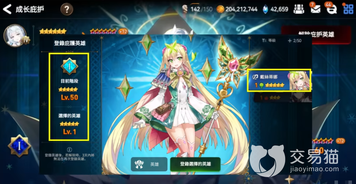 3、这个功能除了可以为大家复制一个高练度角色外,还有一个更好的用处。那就是在新出来一个角色时,最好先进行成长庇护试一下他的强度,觉得不错就可以直接拉满培养,感觉不好用就就不练了。