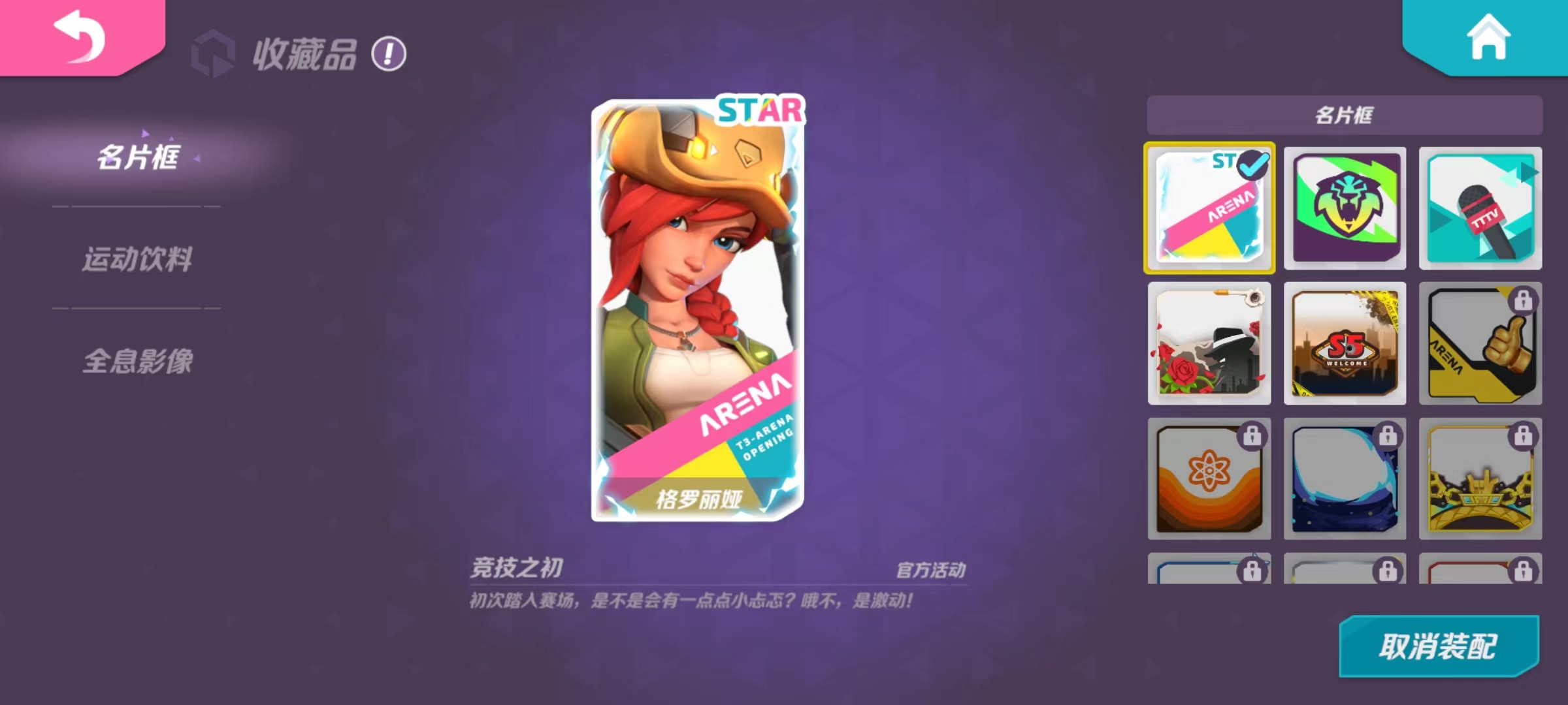 三大类收藏品中“名片框”应该最好理解,就是对战载入时玩家的人物边框。如果对战中选择了某个英雄,那么对局开始前展示出的就是所选英雄加上装配的名片框。