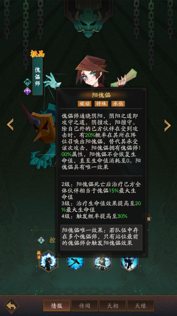由此可以看出此角色的主要技能还是阴傀儡,毕竟在那个状态下的角色不仅能够施展出高额的伤害,同时还能够控住对方一名人员,可以有效地降低他们的输出能力。而且另一个技能虽然没有很高的伤害,但能够有效地提高了队友的生存能力。
