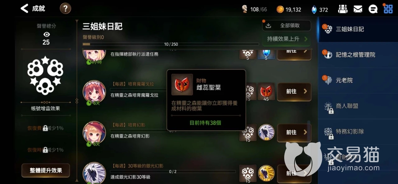 除此之外,就是“冒险者之路”的奖励了,当玩家通过了对应的关卡后,就会开启“冒险家之路”,比如“冒险者之路第二章到第四章”,就会得到200枚“雌性之花”,“在精灵之森找到一只企鹅,就会获得300枚雌性之叶”。