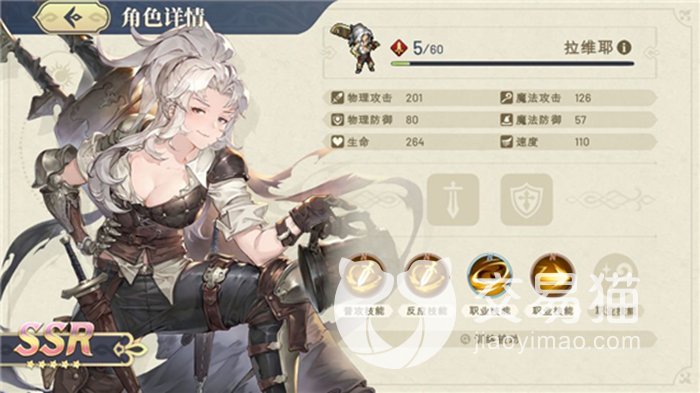 1、重剑士拉维耶,作为SSR的游戏引路人,帮助玩家对游戏的认知和玩法更加了解。这个角色属于隐藏的限定角色,玩家只能通过完成相应的隐藏任务才能获得,并且,玩家无法通过抽取的方式获取。拉维耶作为佣兵团的团长,在战力方面是不可小觑的,并且还精通各种类型的武器,拥有很强的单体输出技能,并且攻击距离较远,还有范围性的剑气杀伤技能,是萌新在初期玩游戏时很不错的一个选择。