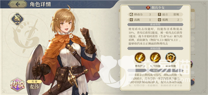 3、小镇佣兵盾兵麦莎,人物为SSR等级,主要采用了单剑和单手盾的攻击方式,在游戏进入中后期时,这为角色可以说起到了十分关键的作用,除了强大的攻击力以外还可以带给团队十分有用的增益BUF,在游戏中让玩家可以更加轻松的挑战BOSS。并且,这个人物在使用盾时的防御力极高,相当于坦克一样的存在。