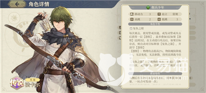 2、小镇佣兵射手法卡尔,属于SSR级别的人物,在游戏的前期作为新手玩家的福利,人人都有。作为佣兵,这位人物最擅长使用的就是弓箭,攻击范围很广,并且移动能力极佳,十分适合快攻型玩法的玩家,可以满足玩家自由在敌方阵营不断穿梭击败目标,这是一个相对比较容易上手并且娱乐性十分强的人物,很值得玩家进行体验。