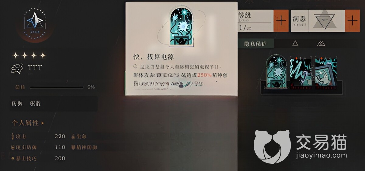 TTT在游戏当中充当的是四星级角色,其中他的魔法防御和攻击生存能力都达到了a级,在同等级的角色当中是非常强悍的存在,他独特的隐私技能可以让他在生命值较少时瞬间隐身,并且这一技能可以持续两个回合,传承二级时还可以让他获得5%的真伤攻击力加成。