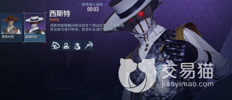 最后一位就是最强策略型角色——西斯特,代号“魔术主宰”,行踪诡谲,飘忽不定说的就是西斯特,别看西斯特带着礼帽一副绅士的样子,其实他最具迷惑性。西斯特的两个主技能都可以帮他快速传送到想去的位置,经常会给正在破译的敌方天狼星打个措手不及;主三技能直接近距离抓捕隐身敌方,再次释放技能可对敌方造成40%的伤害;四技能直接30%的加速每次的位置传送。西斯特若与其他队友搭配合作,其实力也是不可估量的。