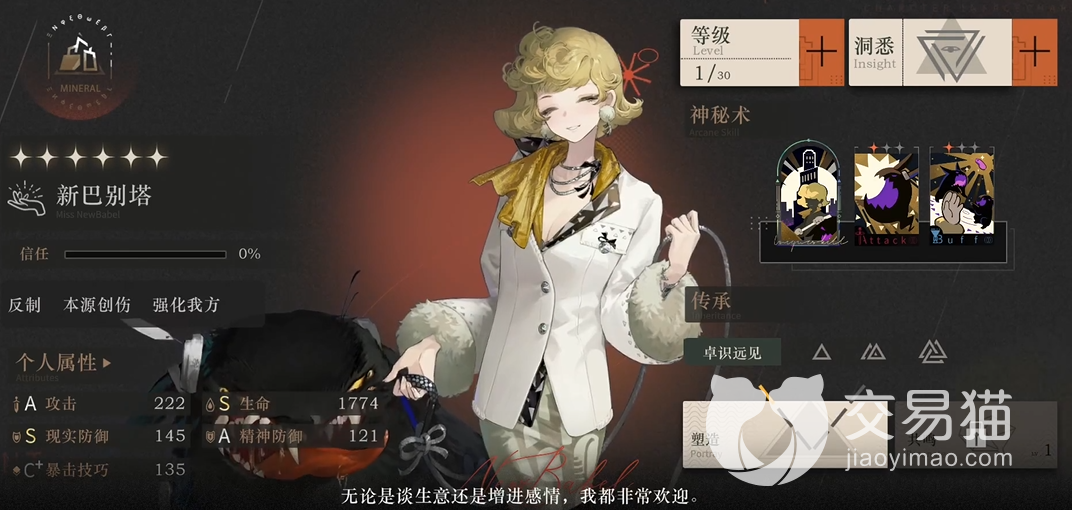 新巴别塔这个角色在初始的情况下,其实一技能就是比较强的,其他的角色一般一技能是150%或者是160%的伤害值,但是这个角色的一技能就是一个比较高伤害的技能,有200%的伤害值,升星之后会带来自身防御值的本源创伤。
