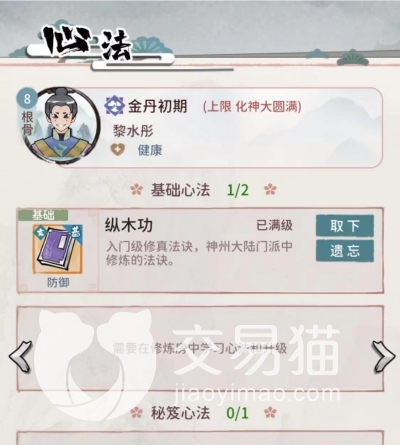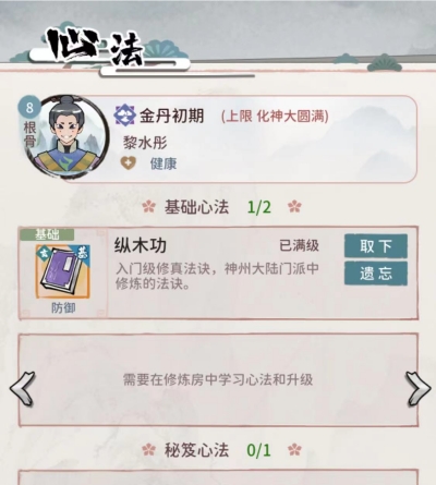 由此可见,玩家一旦在游戏中让弟子遗忘功法,那么该功夫自然会立刻消失。这也意味着玩家在获得高级别高品质的功法后,可以通过这样的方法让已经学满功夫的弟子再腾出一个功法空白栏,好方便他去学习更好的功夫。