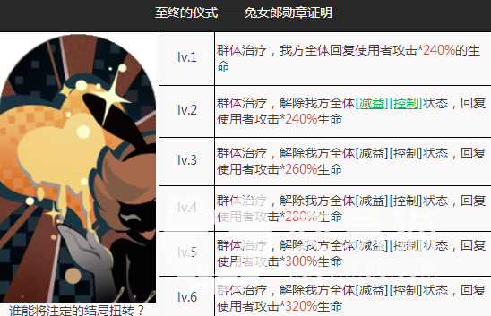 这个角色最拿得出手的还是她的大招,这是一个游戏内很少见的群体治疗效果,在释放之后可以直接治疗我方全体成员,最多可以恢复使用者攻击值320%的生命,这也就意味着这个角色的输出越强大,治疗效果就越给力,玩家们可以优先给其升级攻击属性,这样既能保障我们的输出,又能最大限度优化我们的治疗效果,一举多得。