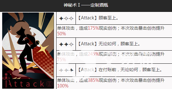 在芭妮芭妮眼中,无论什么情况之下,客户永远是最至高无上的,玩家们可以使用这个技能对敌方单体目标造成一定的现实创伤效果,还有一定属性的暴击率,升到满级之后,暴击率可以达到百分百。