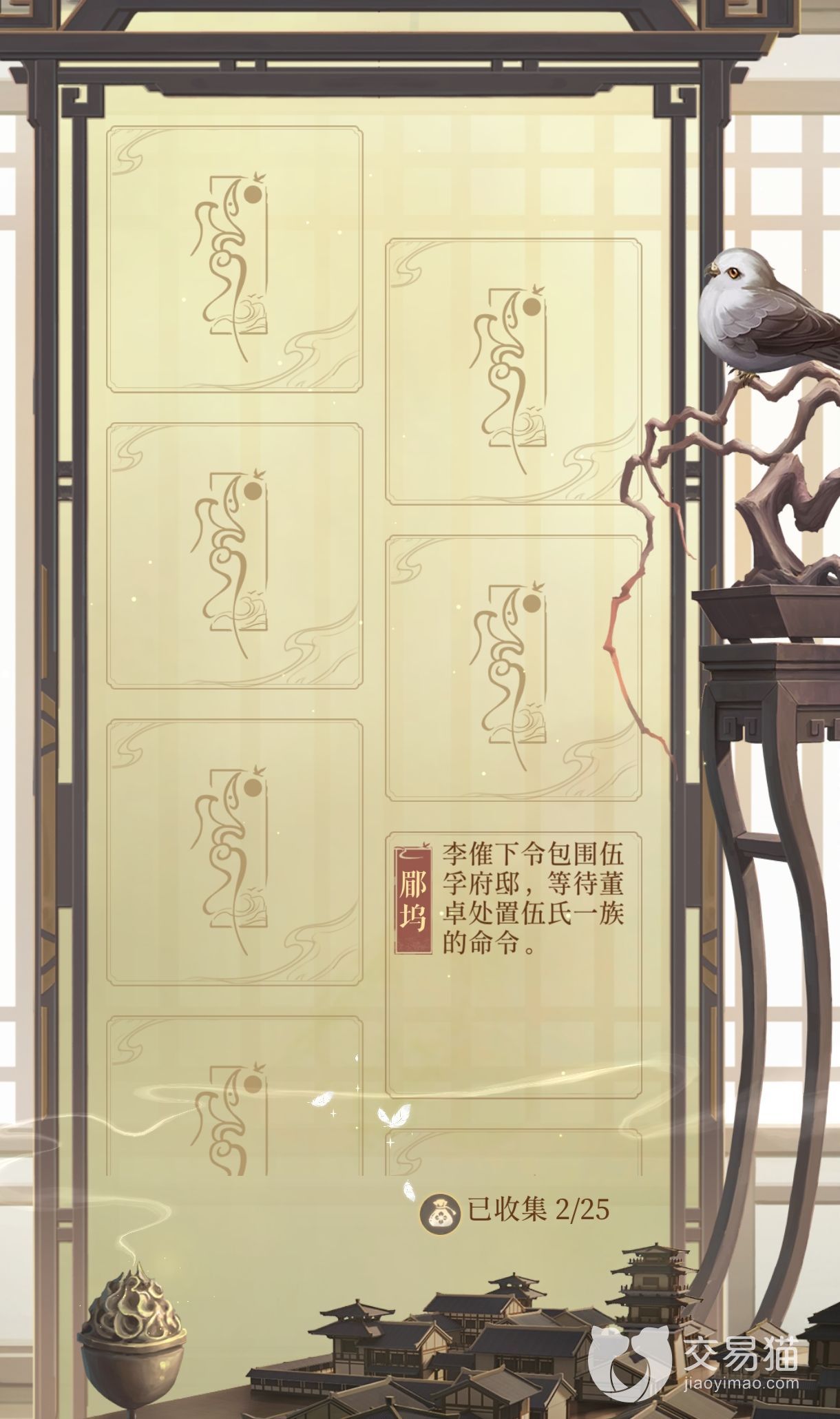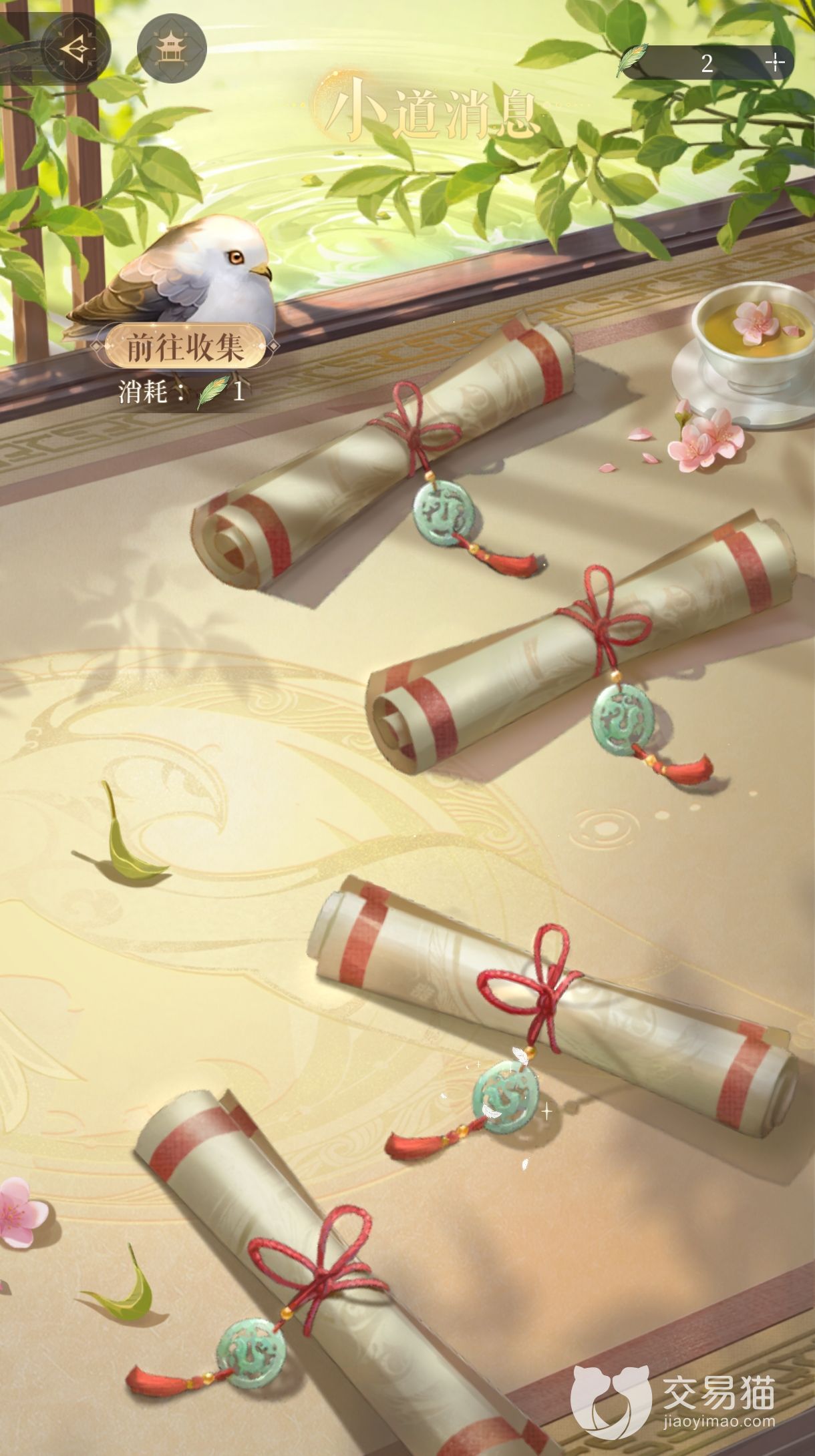 首先玩家如果说想要收集世界杂闻的相关信息的话,需要去放飞茶鸢,收集小道消息,一天可以放飞三次茶鸢,一次可以收到五个小道消息,重复的小道消息会兑换成100铜币。
