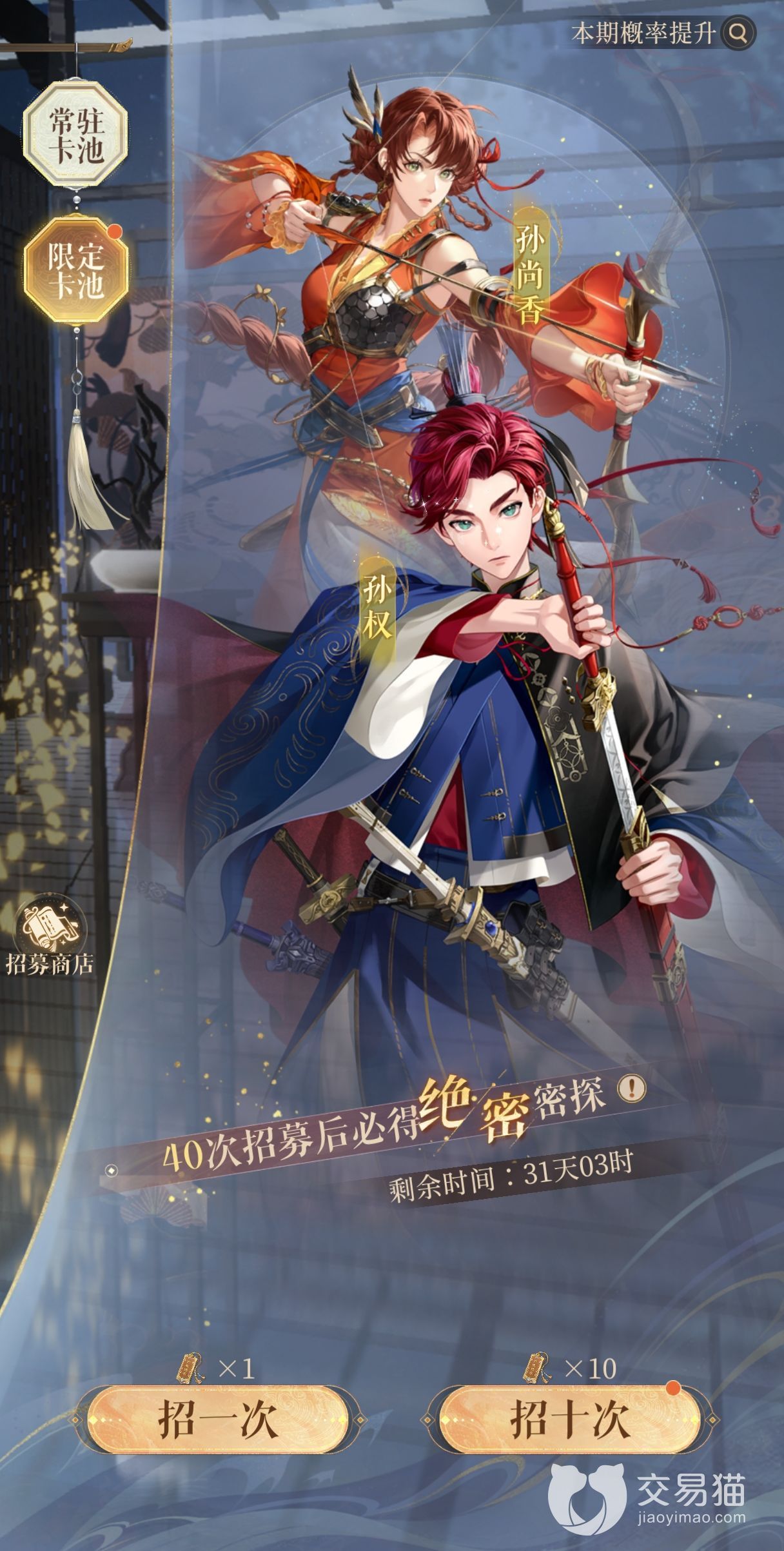代号鸢到目前为止只推出了第一个限定卡池,也就是孙尚香孙权卡池。那么在代号鸢限定卡池继承保底吗?现在绝大多数的抽卡游戏限定卡池或者是常规卡池都是会继承保底的,但是代号鸢中的限定卡池是并不会继承保底。代号鸢的保底机制相较于其他游戏有所不同。