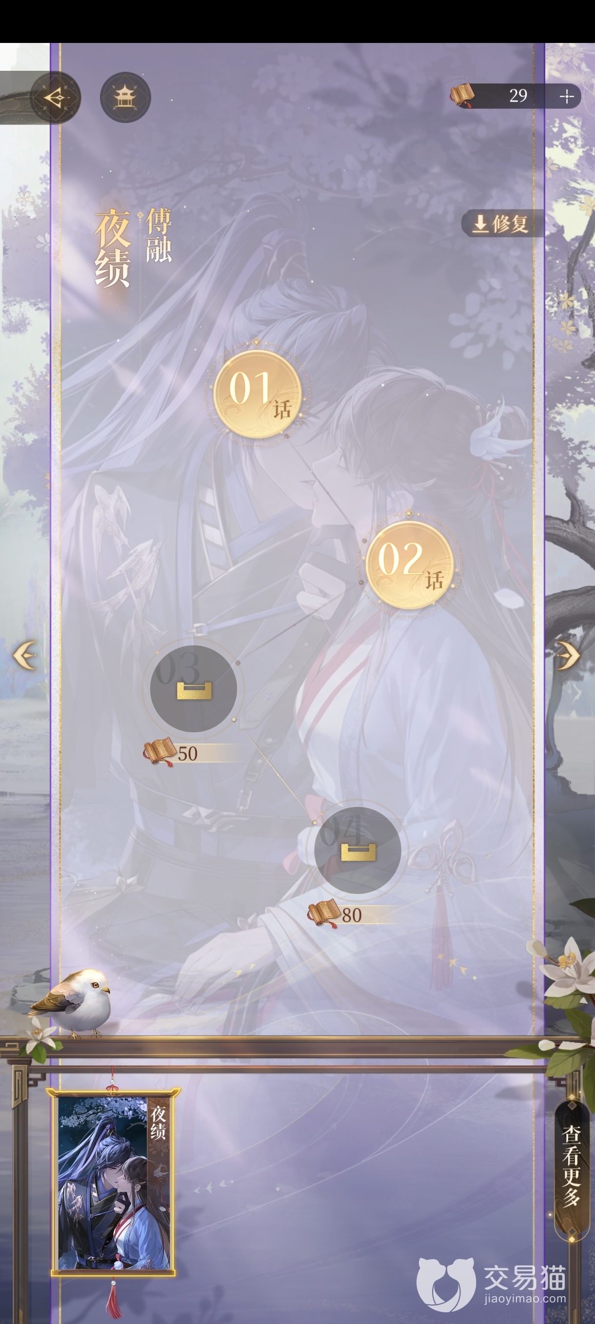 获取账本之后就可以在恋念中点击到傅融,进入傅融的恋念页面进行解锁。目前傅融的恋念有四话。将兰台中的傅融30关打完大致可以解锁前三话,第四话就需要去不断的刷兰台了。