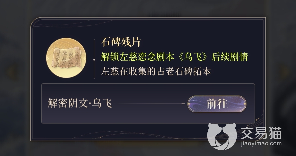 在获得一定数量的石碑碎片之后,就可以解锁左慈的后续剧情。在左慈恋念之中,左慈会作为绝对的唯一男主进行出现与玩家进行更多的互动,玩家可以通过这一个恋念更加深刻的了解左慈的人物特征等等。