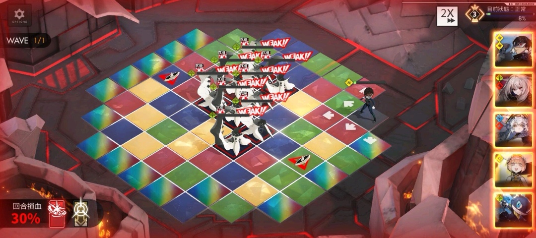 焚霜座的主动技能是【天岩之坠】,在释放该技能之后,会消费10层旧印之力,攻击范围非常广,可以对周围三圈范围内的任意一个空格上的敌方成180%的伤害,算是很高的一个输出力度。同时,这一技能还会对以那个格子为原点十字方向的四个格子造成一半的伤害,只不过该技能需要积攒能量,所以无法在开局的时候直接使用,这一点是有点鸡肋的,这就意味着焚霜座当不了队长。