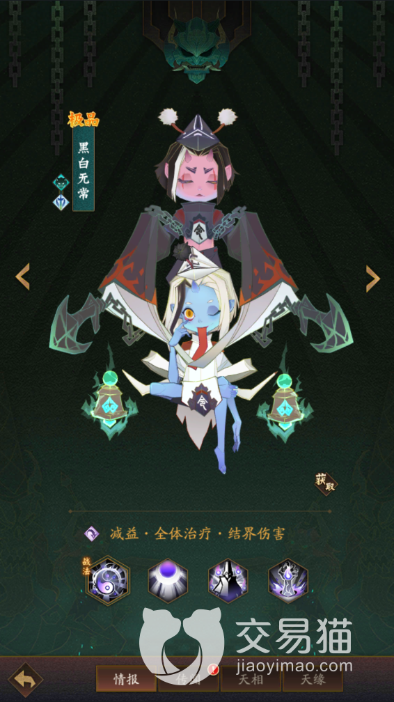 队伍中再搭配上黑白无常这个角色的话,还能够反复给敌人叠加各种减益buff,能够对手带去不少麻烦,不过这个队伍想要更好的提升的话,可以使用武圣主角,搭配这个白无常能够保证队伍的整体生存,黑无常也能够补充一点输出。