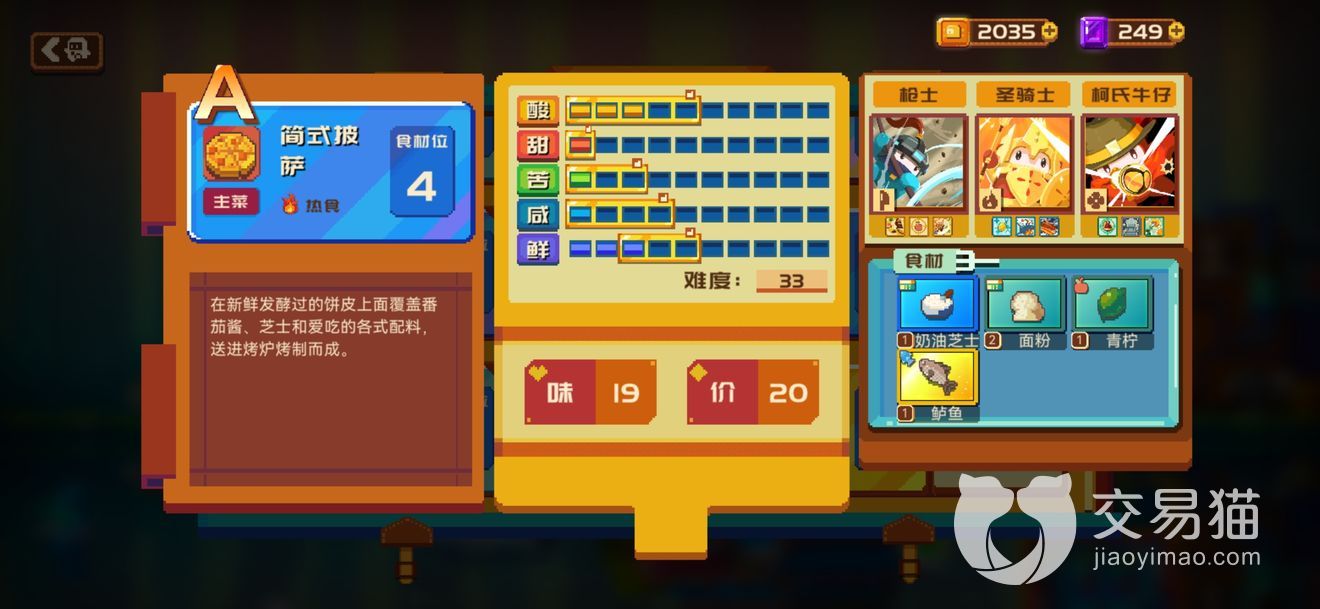 这道菜食材上需要奶油芝士*1,青柠*1,鲈鱼*1,面粉*2。食材上可以通过解锁各个级别的菜谱和门口小贩处购买。