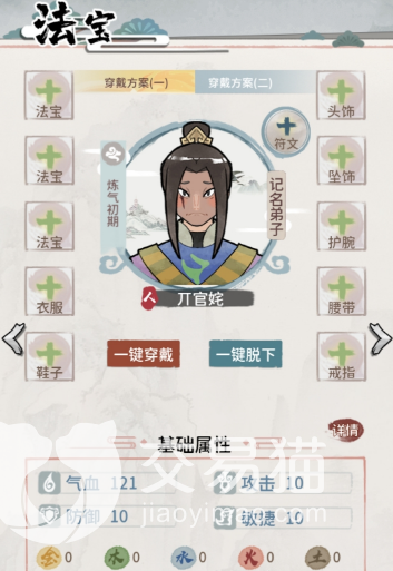 在游戏当中除了辅助角色要佩戴应有的装备以外,不管是任何的角色都应该全部的佩戴,包括戒指、护腕、鞋子、腰带、法宝、头饰、坠饰这都是必不可少的。