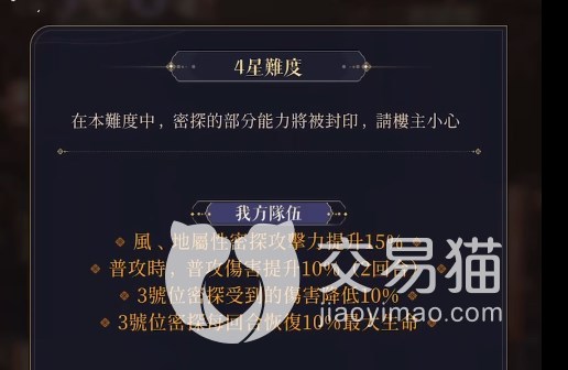 此外,这一层还会有己方buff增加,可以让3号位的角色得到减伤加成与回血,因此可以把最脆皮的放在3号位。而且在王粲“链子”的加持下,整体的血量也都处于一个非常安全的线。