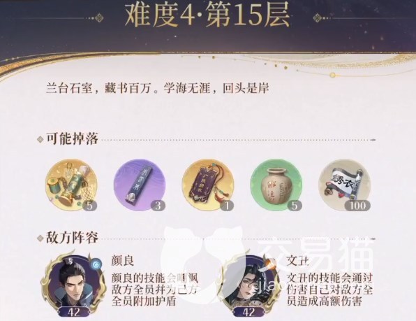 通过上述讲解大家对代号鸢兰台4-15的难度相信也有个大致的了解了,中文列出的这些密探,练度上不说绝对一致至少也要贴近。如果缺少的角色实在太多,也可以去九游代号鸢的专区查阅更多其他玩家分享的分案,并没有说一定需要哪些角色才能过。
