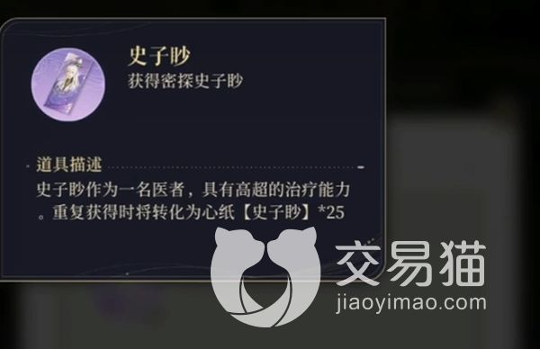 除了这一个礼包之外,还能再购买一个治疗密探礼包,价格是40元,在这个礼包里面,大家除了能获得一些小东西之外,还有一个非常强势的角色叫做史子眇,这个角色他是游戏中的最强奶妈,是一张紫卡,大家只有购买该礼包之后才能获取到,因此要想获得这个角色的话,必须得去购买一下治疗看看礼包哦。