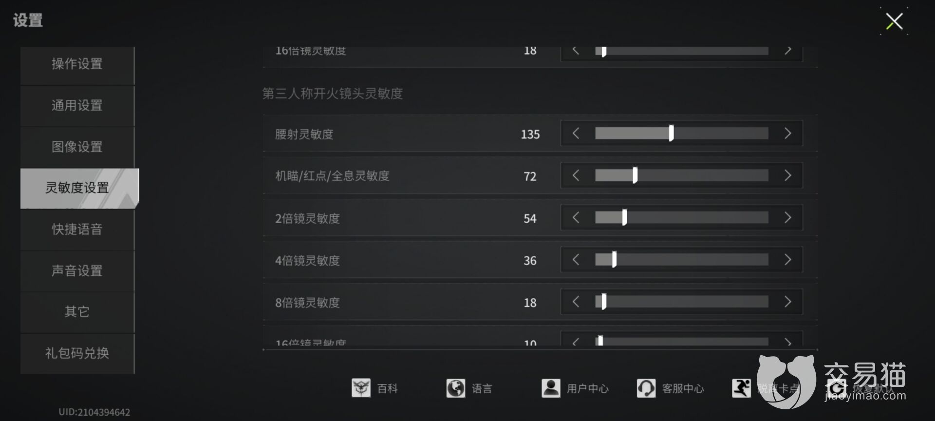 另外,我们还可以在游戏左下角的设置页面设置第一人称和第三人称的各种灵敏度,比如我们可以设置在没有开火时,腰射灵敏度,和各种倍镜使用时候的灵敏度,大家可以调整这些灵敏度参数,使自己在战斗的时候玩起来更加顺手。