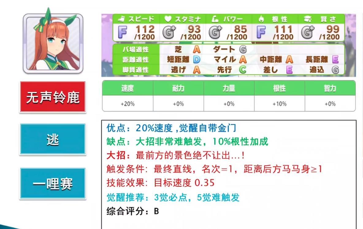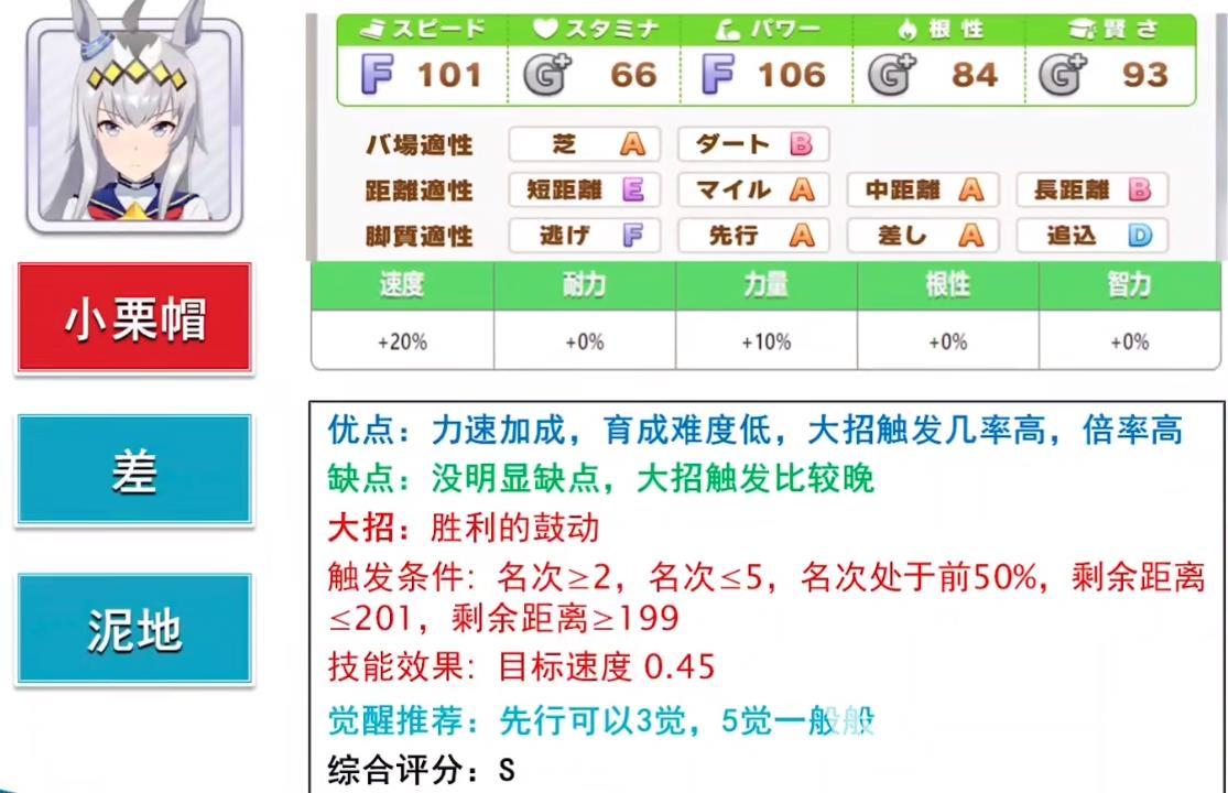 小栗帽:这是一个以逃跑为目标的马人,前期表现得很好。那么,从马背上逃跑的好处是什么?第一个优势,就是能够确保自己的排名,因为逃跑的马匹,在跑在最前面的时候,都会以最快的速度跑下去。第二点,就是逃跑的坐骑对属性的需求并不大,在游戏里的战斗中,很多逃跑的坐骑都能拿到很好的战绩。这只母马并没有什么特殊的能力,所有人都可以自由选择。
