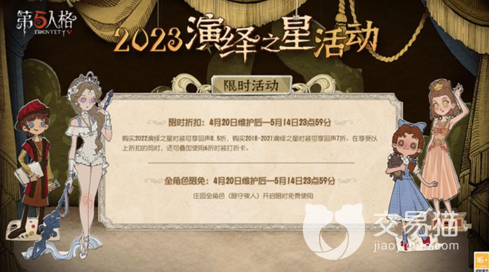 本期小编要给大家带来的是第五人格演绎之星活动2023有什么 ,《第五人格》2023年的《演绎之星》活动马上就要开始了,那么这次的演绎之星活动会有什么新的内容呢?下面就让我们一起来看看这次的《演绎之星》。
