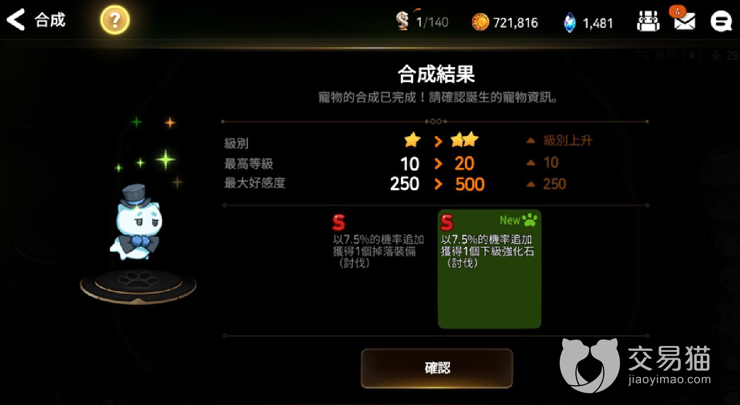 3、合成:将两个4星的胚子合成为5星,此时可以选择保留A、B、C三个技能,这样一个五星的S宠物就算是做好了。虽然看上去挺复杂的,其实只要将两个胚子分开来看还是很容易理解的。