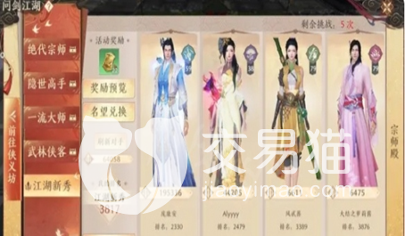 江湖宗师殿可能对于新手玩家来说有点陌生,这个模式是存在万剑江湖系统里面的。这模式里面有天梯排行榜,排名越往上对手的战斗力越高,与此同时,挑战成功的话能获得的名望也更丰厚。