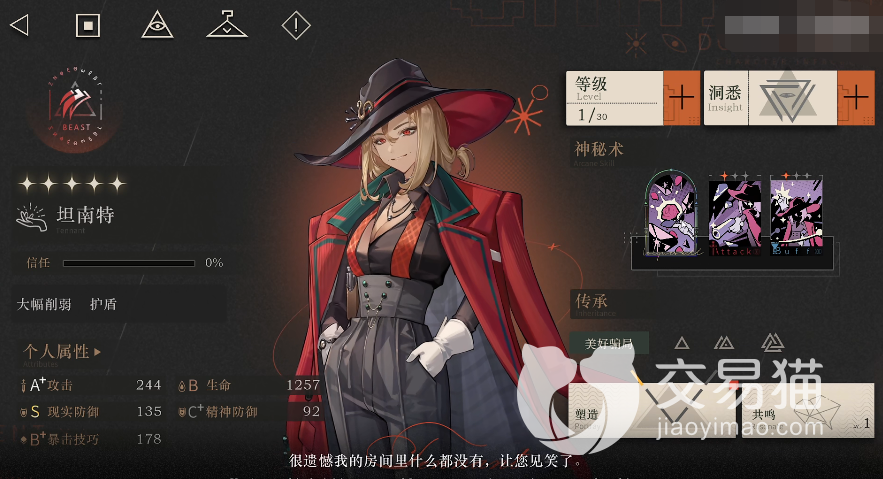 ③X:面板比较均衡的一个角色, 本身没有特别突出的属性,不过他主要还是依靠技能中的特效来打作用,一二技能都是单体创伤能,并且初始倍率就有200%,这在一定程度上算是弥补了他攻击的不突出,另外这两个技能分别能够清除敌人的增益和反制,无论是应对那些进攻型的敌人,还是防守型的敌人都起到了很好的限制,另外他的大招则是群伤技能,虽然伤害倍率相比同类型技能并不算特别突出,但附带的降激情效果能够很好的恶心到那些正准备放大招的敌人。