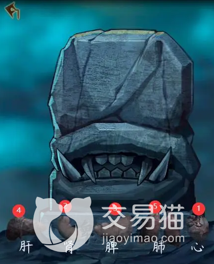 来到右边的房间之后收集信息,然后按照顺序给来世碑喂食,顺序为心、肾、脾、肝、肺,按照顺序投喂之后就可以获得线索,可以解谜。
