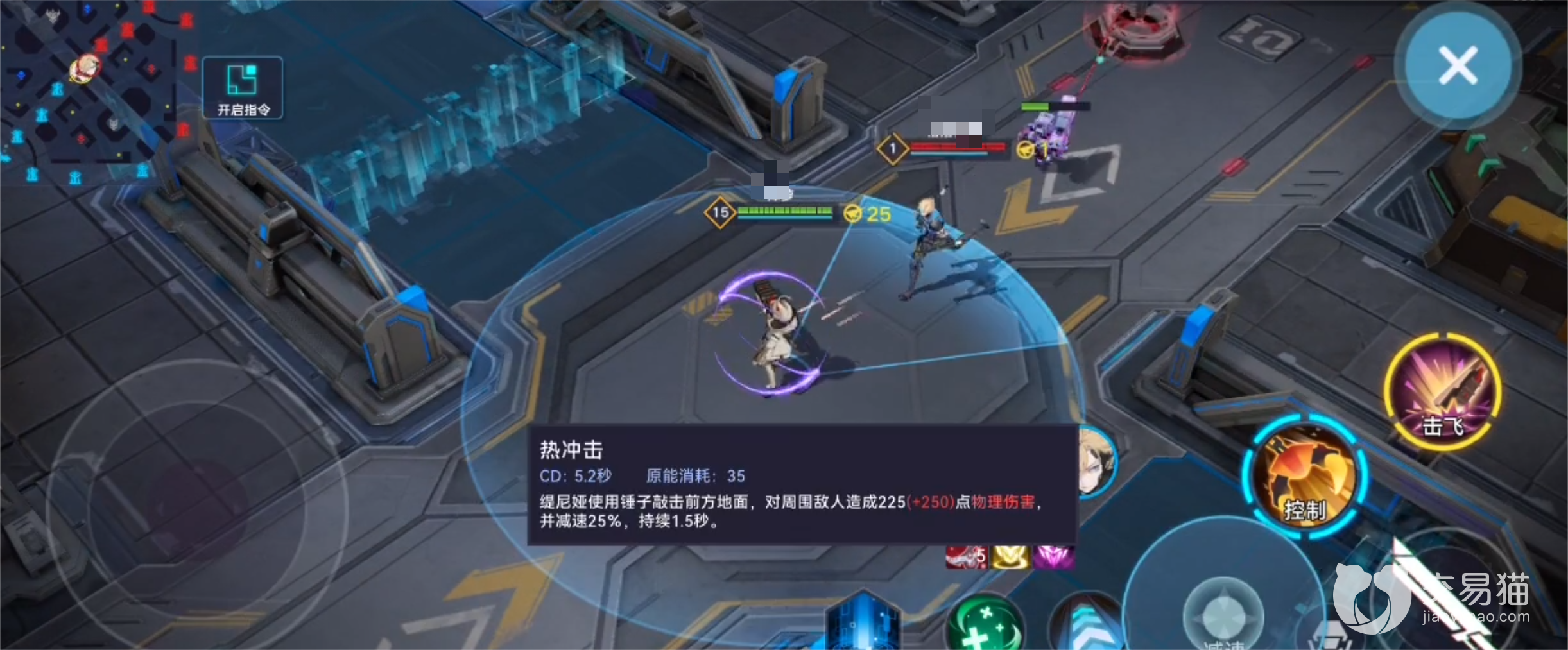 一技能是热冲击,对周围敌人造成伤害后,减少敌人25%的移动速度。二技能是一个类似钩子的控制技能,命中敌人后,敌人会被造成眩晕,并附加额外的伤害。三技能是动能轰击,对目标区域造成伤害,并击飞位于目标区域里的敌方英雄。