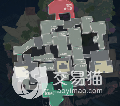 在这一个地图当中为大家提供了三条不同的道路,在每一个道路上都有很多独特之处,可以防御,可以攻打。游戏中包点数量一共有三个,机制为可破坏门。