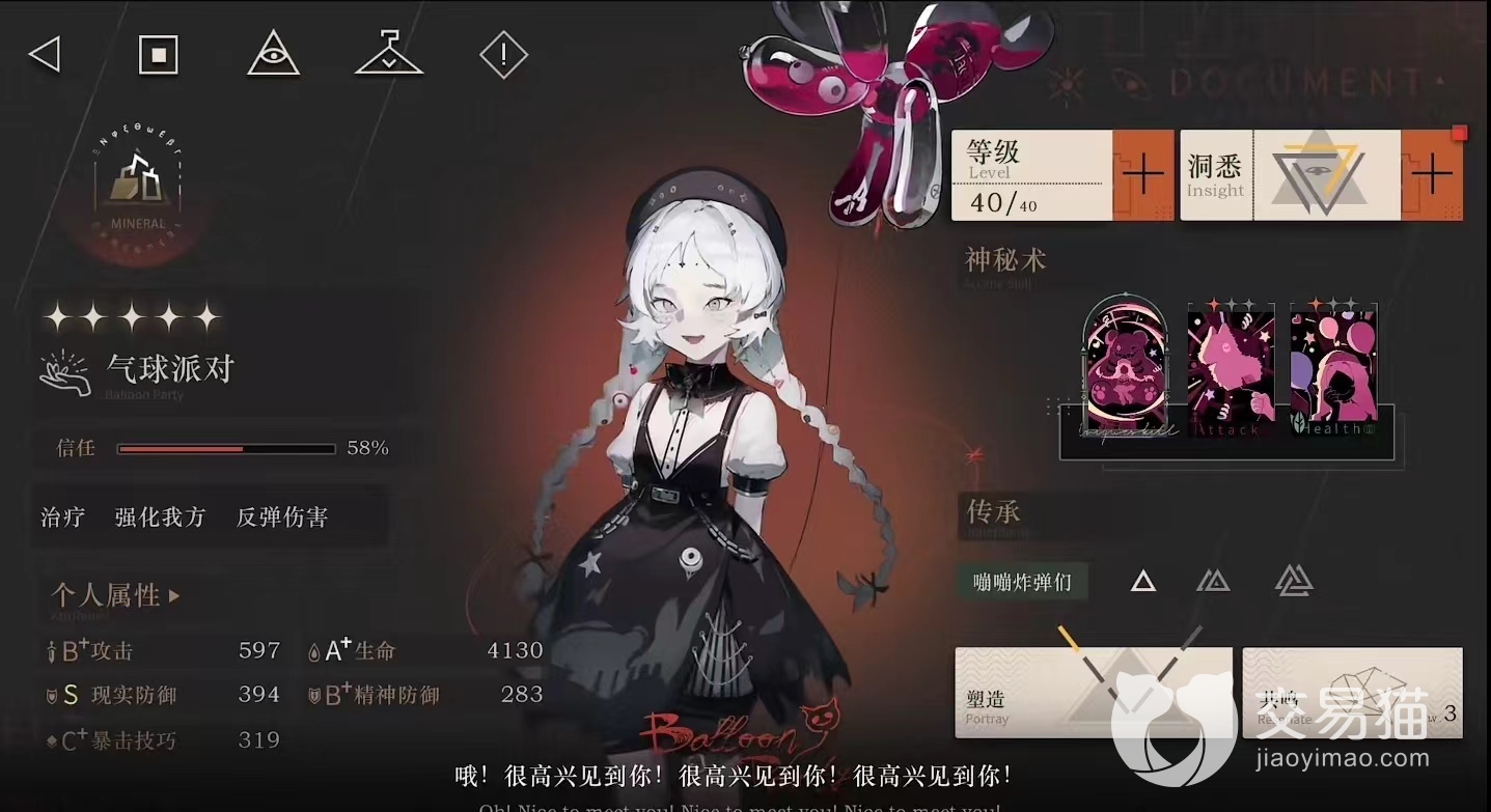 气球派对这个角色拥有伤害反弹的能力,还同时拥有强化以及治疗的多种能力,他所拥有的名叫好孩子的神秘术是一个群伤技能,在战斗的时候使用的话,会为整个团队叠加一层减伤的效果,皮纳塔塔神秘术则是一个单体攻击技能,在特定的条件下,使用这个技能的时候,敌方的防御效果将发挥不出来。
