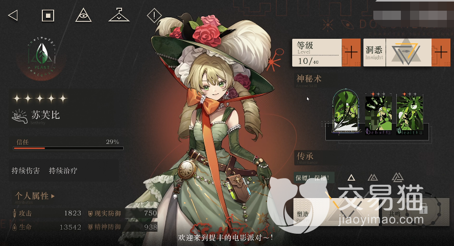 ②槲寄生:她的功能性在六星角色中无出其右,而且S级的精神防御,A级的现实防御也足以支撑她自己不会被秒,从而尽可能多的施放技能来创造贡献,技能层面,一技能升星后可在打伤害的同时施加单体石化,大招更是能造成群体伤害的同时将敌人的石化时间给继续延长,此外,她在洞悉后还可以降低被石化敌人身上的所有增益,打那些buff怪非常好用。