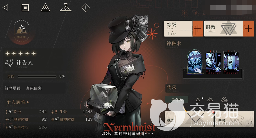 ④讣告人:五星角色中攻防一体的存在,进攻端,她不仅有着A+的攻击属性,而且在技能这块还拥有无视敌人部分防御的单体输出能力,防守端,则可以依靠一阶传承提供的祷言和大招提供的祷言+强韧来充分保全自己的生存,而且大招提供的两种buff不仅会给自己,还会应用到队友的身上,如此一来,无论是讣告人自己还是她的队友生存能力都将变得极强。