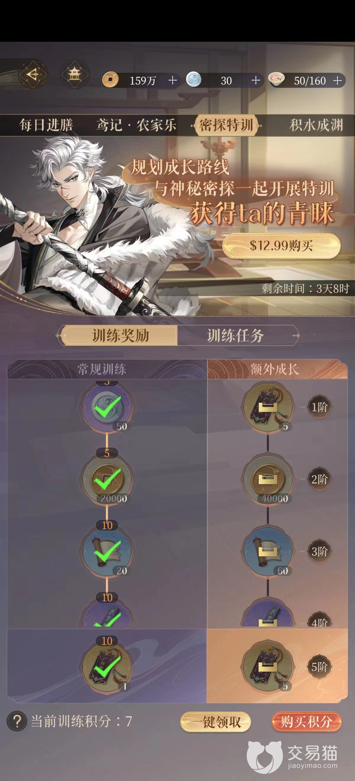 在玩家刚进入游戏时,游戏内有一个新手七天活动,玩家只需在规定时间内按部就班的完成任务便会得到丰厚的奖励,在玩家达到六百积分时更是能得到绝密密探杨修,他是目前游戏内强度排行T0的一名密探,非常强力。