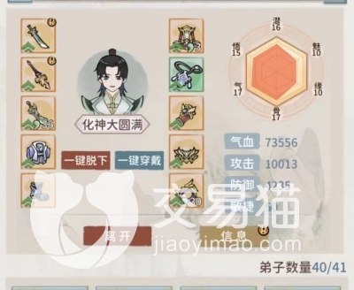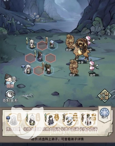 弟子阵容方面,掌门、小师妹加上三位六维拉满的弟子即可,分为三后排两前排或二后排一中两前排的站位,其中前排两弟子均为肉盾(其中一名为加血肉盾),后方三名弟子均为输出,并且境界一定要全部达到化神大圆满,战力参考值为80W,否则输出会很不足。当然了,若是拿到了大师姐,也可以用大师姐替换掉一名输出弟子。