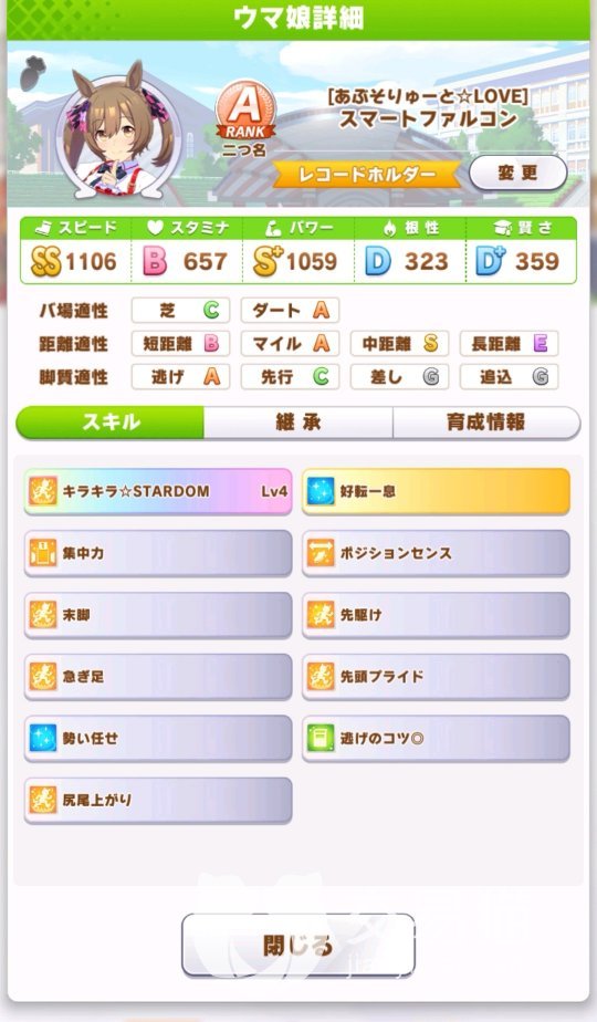 因为醒目飞鹰是短距离赛马选手,所以需要着重培育力量和速度,而持久力属性方面不用太在意,而且触发其技能很容易,只需要保持领先状态,即便不小心开早了,也能让她的能力很好的发挥出来,不用太担心。在选择支援卡的时候,推荐大家在智力支援卡上选择桐生院葵,速度支援卡选择北黑以及无声铃木,力量支援卡选择小栗帽。