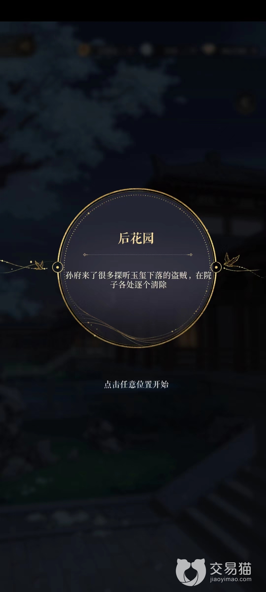 第五章12关为行动-幸会,在这一关内,孙府之中来了许多探听玉玺下落的窃贼,我们需要在院子的各处将其逐个的进行清除。在通关之后,玩家可得到四个兵书残卷、经验*100、五铢钱*5000。