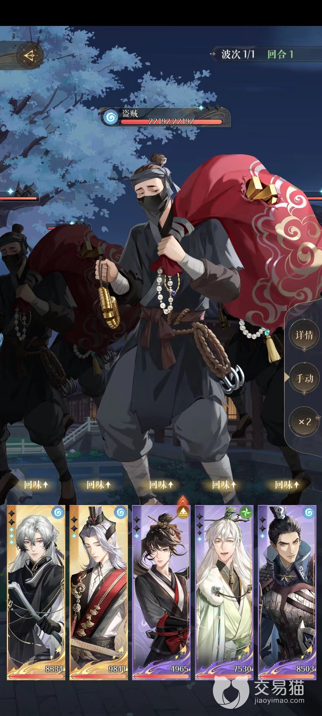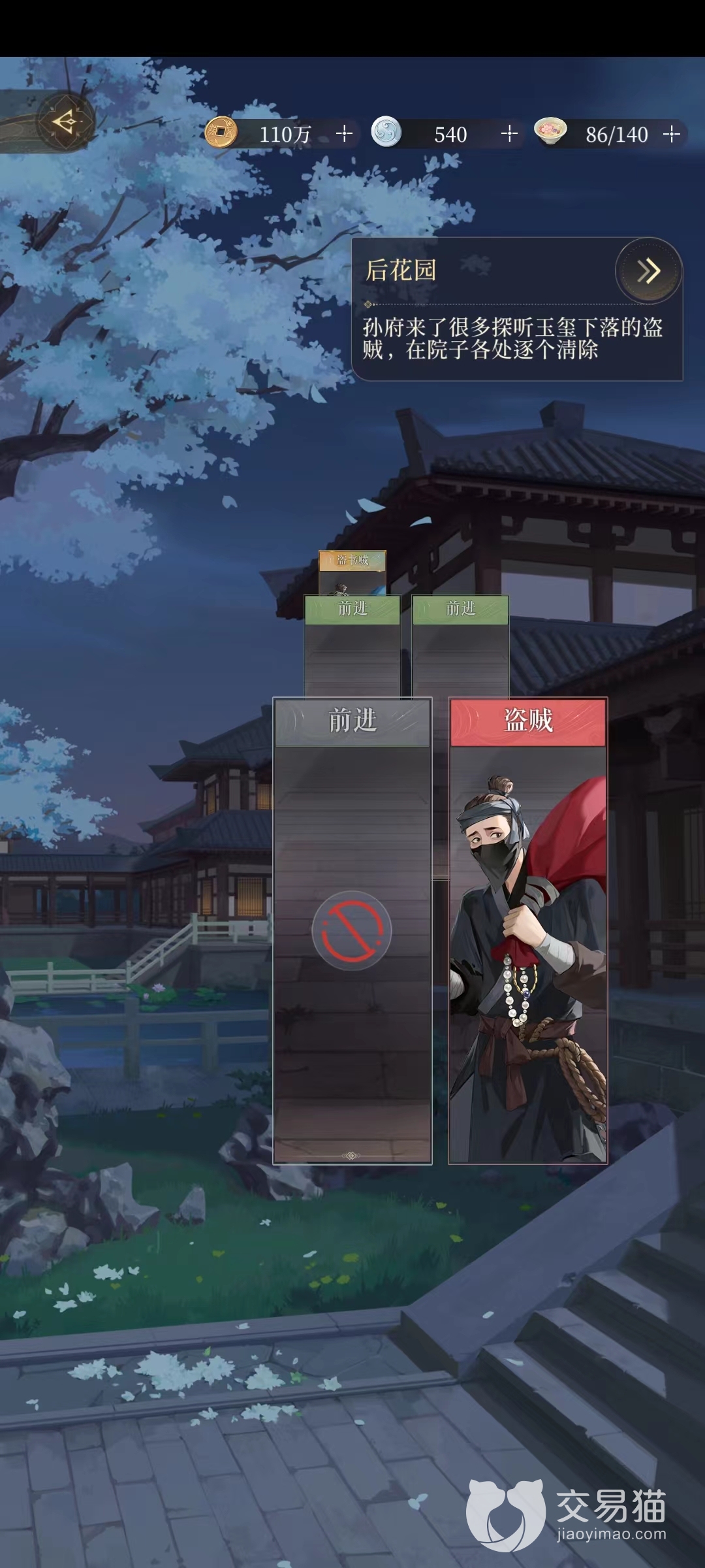 进入后,我们首先要与侍从进行对话,随后我们需要与盗贼进行战斗。盗贼的属性为水、地和阳。水属性会被地属性所克制、地属性会被风属性所克制、阴与阳属性则会相互克制对方,玩家可以根据这个属性的克制关系来选择相应的密探组建自己的队伍。击败盗贼后,可以获得五铢钱*2000、兵书残卷*1。