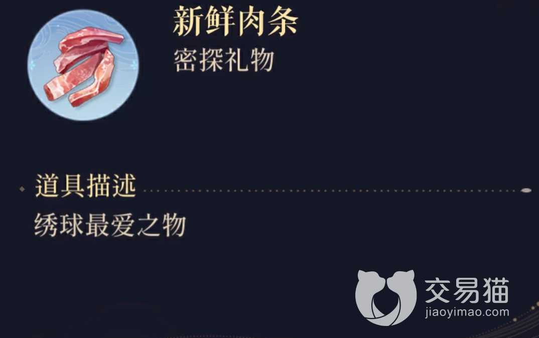 游戏里面金色绝密角色有三种喜欢的礼物,而绣球是蓝色机密角色,所以目前只拥有一种专属的喜爱物,相信各位看完小编分享的密探送礼攻略后,各位玩家都知道代号鸢绣球喜欢什么了吧!除了这一个道具新鲜肉条外,如果想快速刷绣球信赖值,也可以增送其他高稀有度的礼物,就是有点亏。