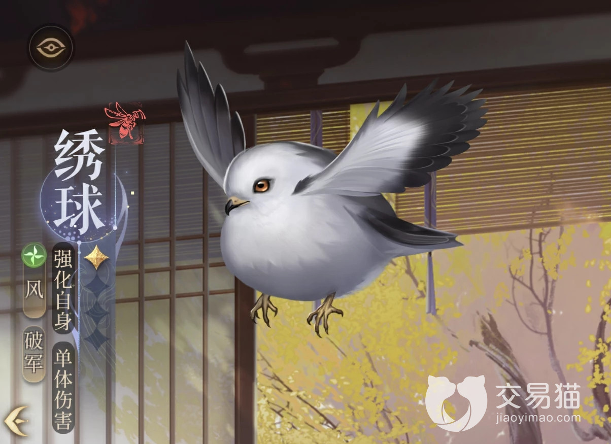 绣球的品种是秀云鸢,作用是潜入目标住宅记住所听之事,定期会回到绣衣楼汇报情报,但由于太肥无法自行飞回,常常以惊人的方式回到漏里。在华佗的个人故事中,玩家可以看到绣球的收集情报的剧情,左慈的鸢记里也有训鸟的剧情。