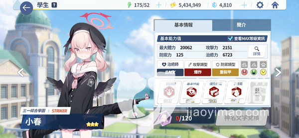 第二个推荐给大家的是三星角色小春,其实也是一个偏向于辅助的角色。攻击属性是爆炸、防御属性是重装甲,这个角色在解锁被动技能之后可以在战斗中增加自身的攻击力,普通技能可以对血量低于一半的友军进行生命值回复,效果为80.8%-153%。如果解锁了辅助技能,在进入战斗30秒之后小春可以获得一定的治愈力提升,效果持续20秒。小春的EX技能可以指定范围释放,给范围内的敌人造成227-431%的巨额伤害,同时还可以对范围内的友军提供一定的回复能力,相较于芹奈来说是一个集输出和回复于一体的角色。