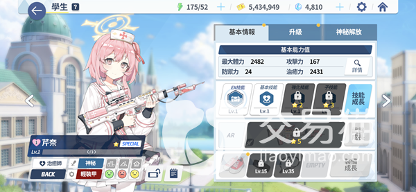 第一个向大家推荐的是神秘类型的轻装备角色芹奈,这个角色初始是一星,基本上进入游戏的第一次十连抽都可以获取,这个角色的定位是辅助,辅助技能可以增加我方的抵抗能力,被动技能则是提升自己的治愈能力。这个角色主要就是为队友提供生命值的回复,普通技能是每过35秒自动对我方一名友军进行治疗,回复量可以达到治愈力的94-178%,还是非常可观的。EX技能可以把一个同伴撤回或者移动到任意位置,并且瞬间回复120%-228%,这个技能可以撤回队友也能够让后排队友位置前移,非常好用。这个角色也能够和小玉替换使用,前期都是比较给力的。