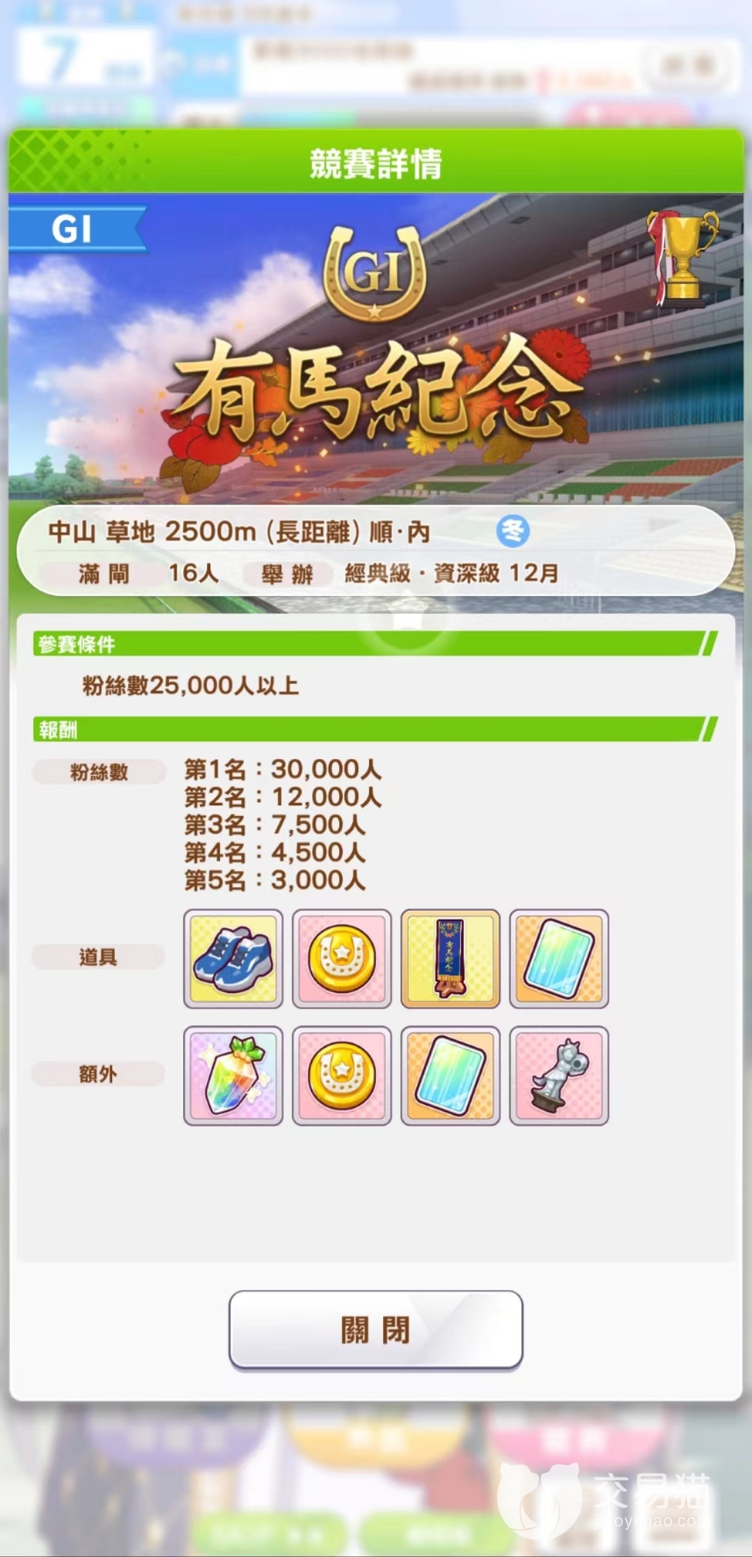 有马纪念 第3年 12月后半 经典级/资深级 中山 2500m 长距离 顺 内