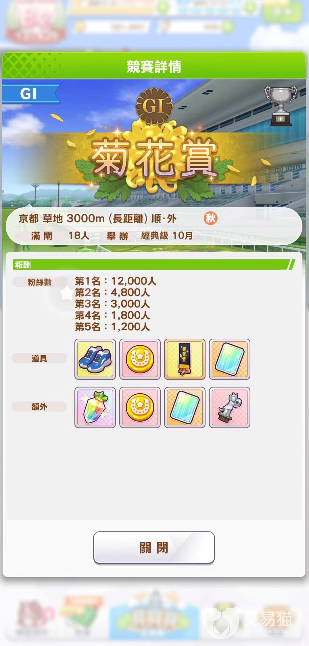 菊花赏 第2年 10月后半 经典级 京都 3000m 长距离 顺 外