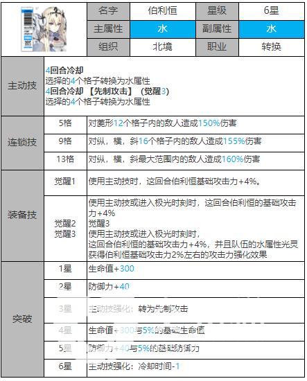 整体上来说,如果能和巴顿配合的话,巴顿同样是水属性转色角色人物,就算是伯利恒需要4个cd的冷却,也能让整个阵容上更加灵活。不过对于输出上就不要指望伯利恒了,她的亮点在于任意指定4个和装备技能。