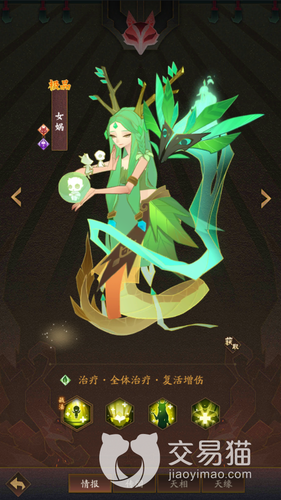 其次就是女娲这个辅助,因为青龙自身的坦度并不是很高,主爆发自身的身板就比较脆,所以再搭配一个女娲辅助回血能够更好的保证容错率,并且女娲的练度是比较容易提升的,毕竟妖族目前来说优秀的伙伴只有女娲。