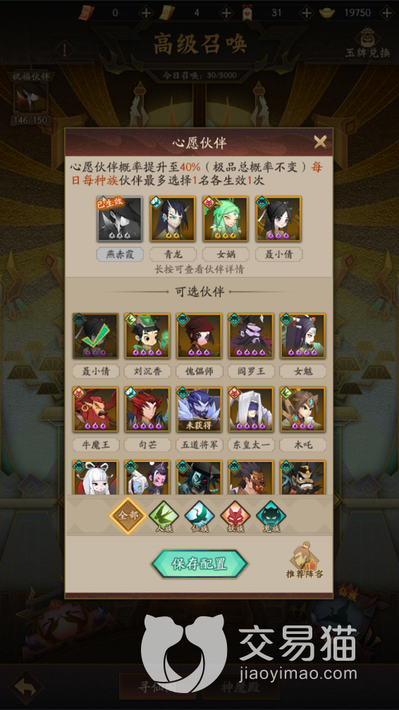 第二种方法就是种族抽卡了,小伙伴们可以选择仙族进行种族抽取,不过种族抽奖券比较难以获得,小伙伴们需要量力而行,如果连续45次指定种族没有抽中,那么游戏也会赠送给玩家一张青龙卡,可以说非常良心的。